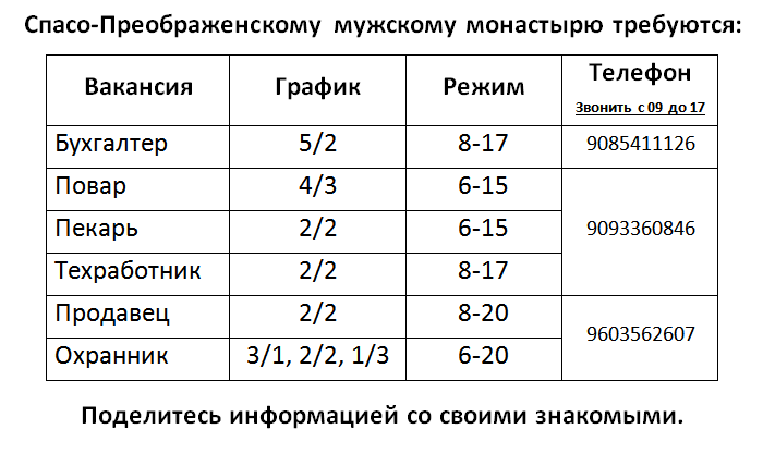 Вакансии в монастыре