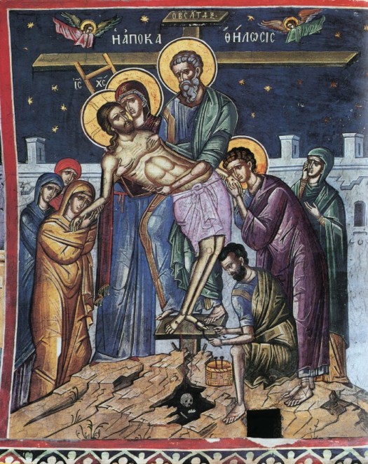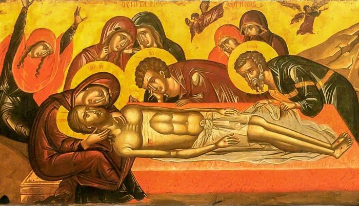 Поскольку до субботнего вечера оставалось совсем немного времени, то друзья Иисусовы, сняв пречистое тело Его со креста, немедленно занялись погребением, в котором быстрота должна была спорить с усердием и уважением к Погребаемому.