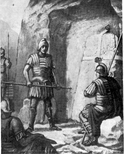 Против такого мнимого доверия нечего было возразить, и первосвященники, взяв нужное число воинов, отправились в вертоград Иосифов. Тут, без сомнения, тщательно осмотрели всю внутренность погребальной пещеры, чтобы увериться в целости тела Иисусова и в том, что из пещеры нет другого выхода, кроме того, который завален был огромным камнем. После освидетельствования камень этот опять был привален ко входу и для большей безопасности от любой попытки войти в пещеру запечатан печатью синедриона. Поставленная стража также, без сомнения, была должным образом проинструктирована, получив приказ стеречь неусыпно то, от чего зависело, как говорили первосвященники, спокойствие целой Иудеи, Пилатовой претории и самого кесаря.