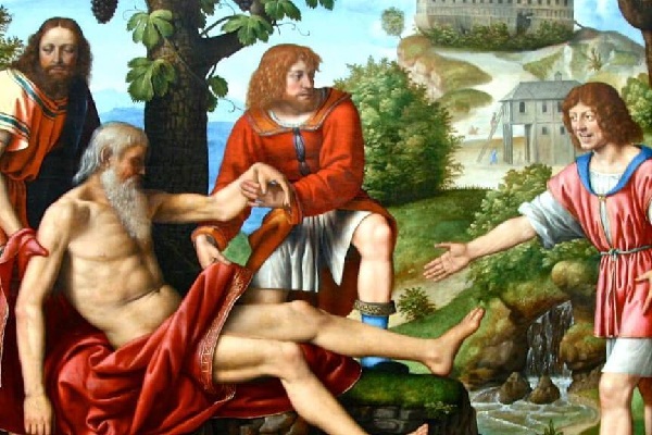 Сим же и Иафет вошли к отцу спинами, не глядя на его грех, и накрыли его, чтобы не видеть его наготу и его срам. Они не позволили себе даже глядеть в сторону отцовского греха.