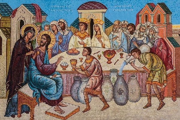 А в Евангелии от Иоанна читаем потрясающий рассказ о чуде в Кане Галилейской. На свадьбе – есть предание, что это было у апостола Марка, он был родственник – кончилось вино. Это же позор на всю жизнь, завтра все будут говорить: «а, это тот Марк, у которого кончилось на свадьбе вино», кроме того, это просто потеря какого-то праздничного настроения, хотя они, конечно, не напивались там так, как это бывает сейчас на наших свадьбах. И Богоматери, бывшей там, не хотелось, чтобы было так нехорошо, чтобы омрачилась радость, и она говорит об этом Христу.