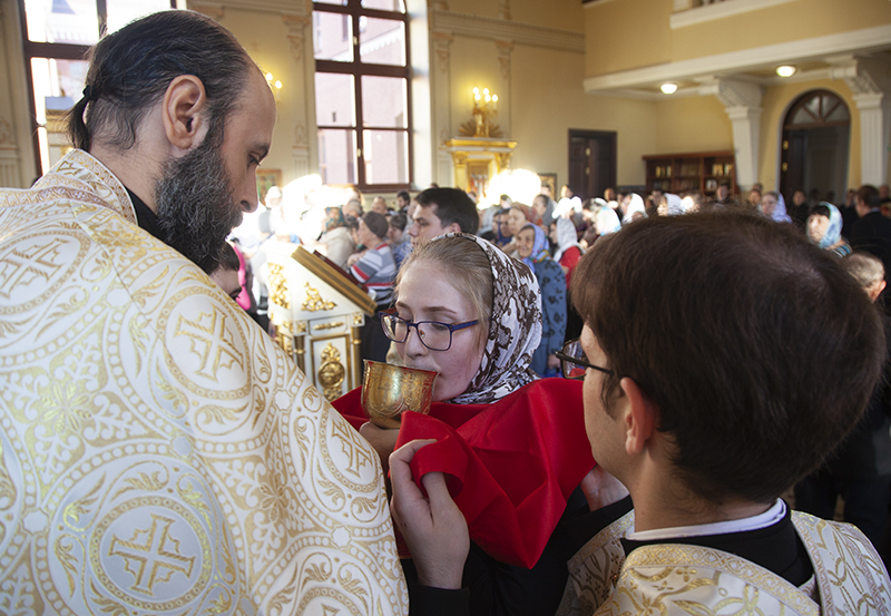 … И отходят людие с миром в домы своя, священницы же совлачаются святых одежд, тожде творит и диакон, потребив святая, и идут в домы своя благодаряще Бога».